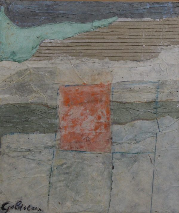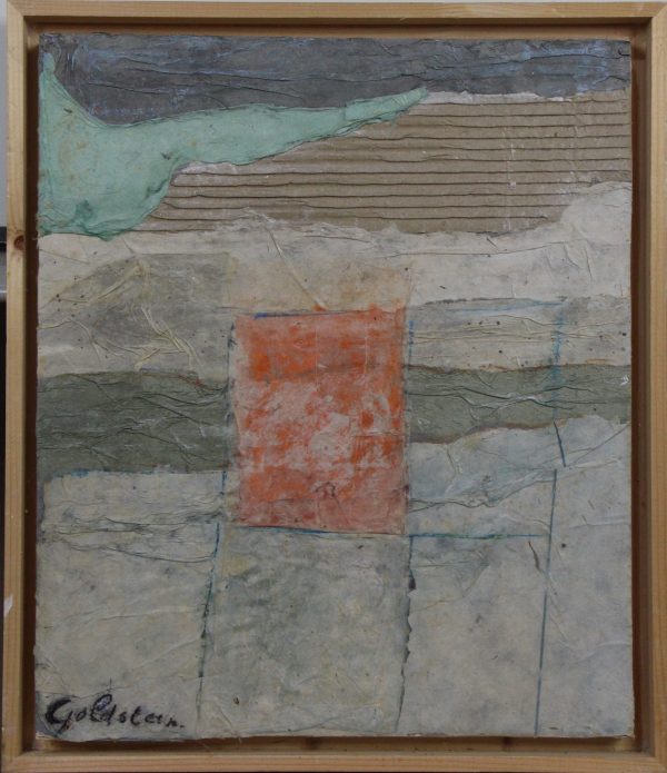 Gemengde techniek op board, uniek werk. Gesigneerd aan voorzijde, in houten baklijst (43 x 37). Afmetingen werk: 40 x 33