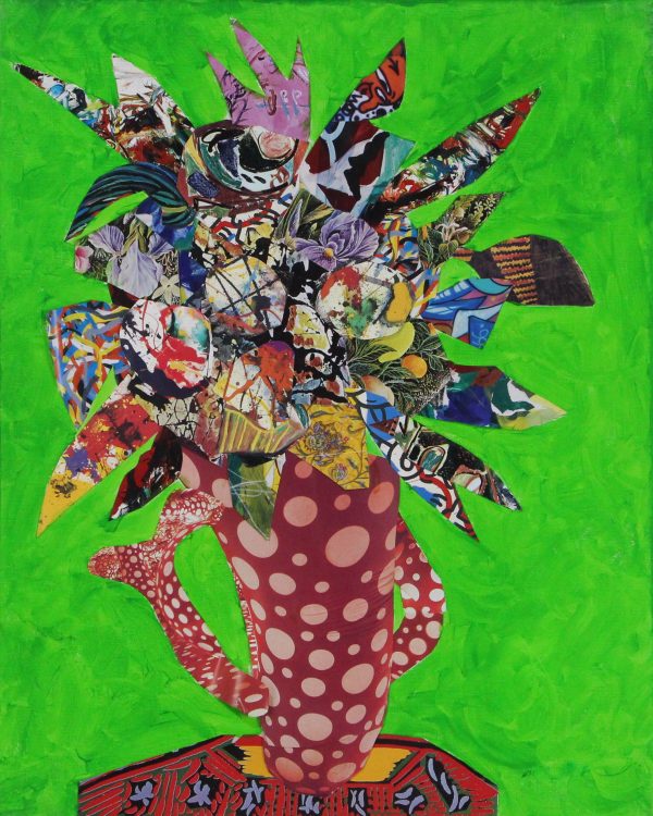 Collage op doek, uniek werk. Ongesigneerd, zonder lijst.