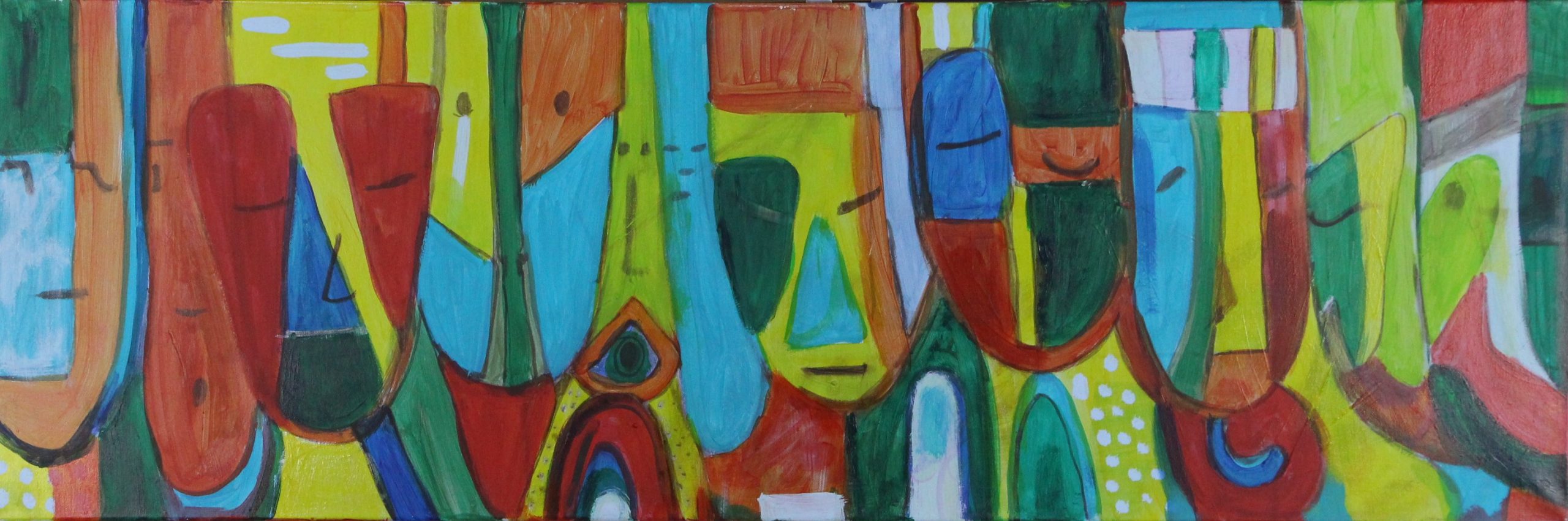 Acryl op doek, uniek werk. Gesigneerd aan voorzijde, zonder lijst. Afmetingen werk: 40 x 120