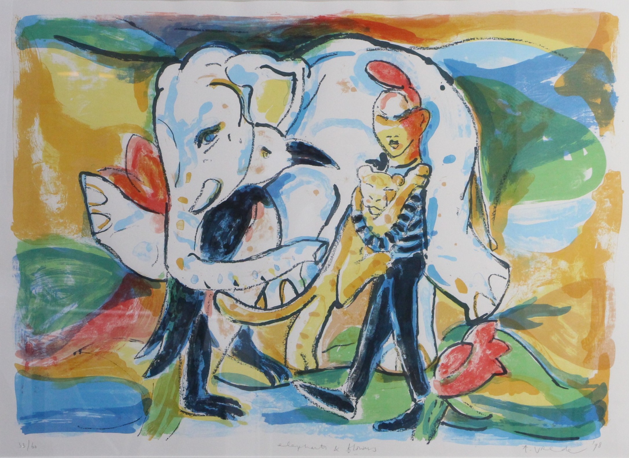 Zeefdruk op papier, oplage 33/60. Gesigneerd aan voorzijde, in aluminium lijst met glas.